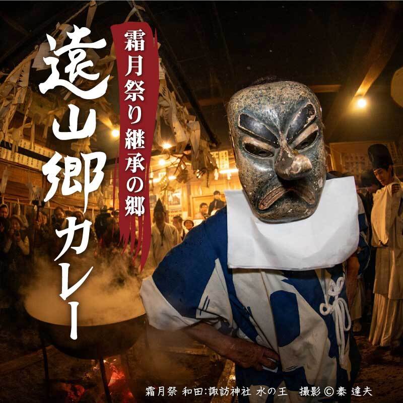 国の重要無形民俗文化財「霜月祭り」を継承している飯田市南信濃の木沢地区と和田地区の保存会と信州味噌入りカレー専門店カレーの大原屋では、霜月祭りを後世に残し続けるための取り組みの一つとして、売上の一部が活動の寄付につながる新商品「遠山郷カレーシリーズ」を商品化しました。